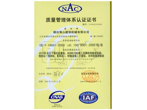 質量管理體系認證證書